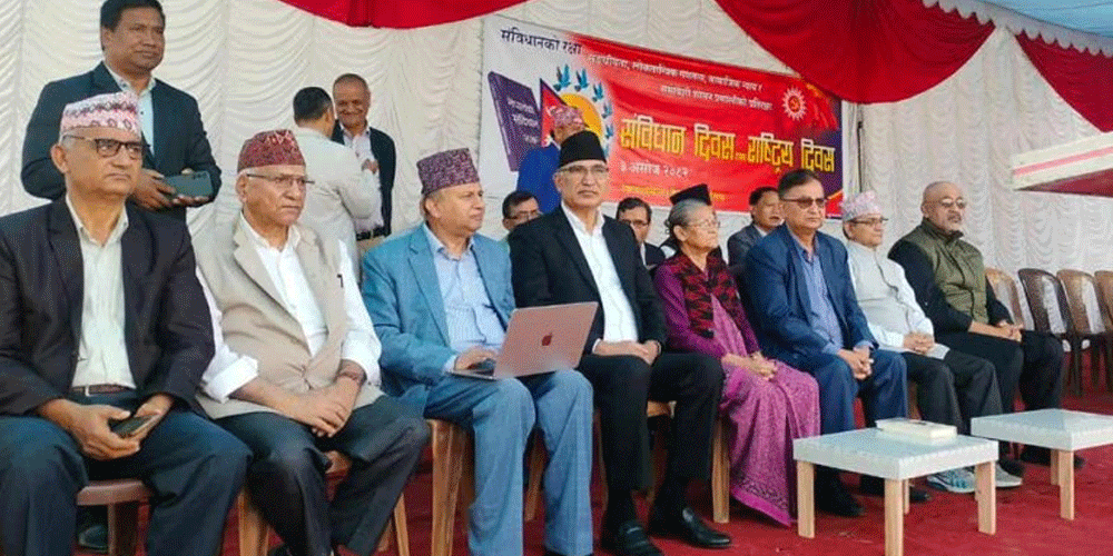 नेकपा एमालेले संविधान दिवसको अवसरमा केन्द्रीय कार्यालय च्यासलमा आयोजना गरेको कार्यक्रममा पार्टी अध्यक्ष केपी शर्मा ओली अनुपस्थित भएका छन् ।
