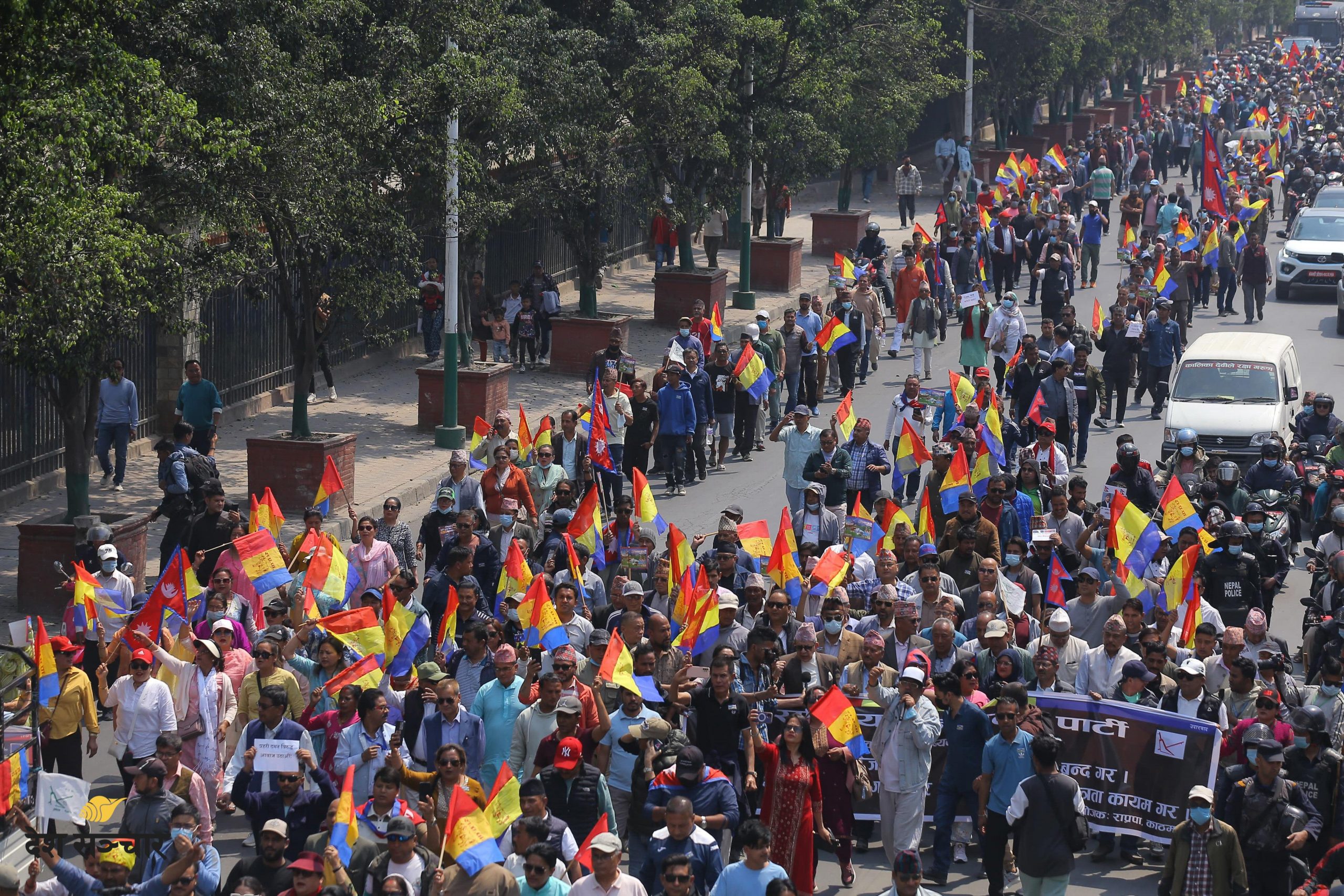पार्टीले आफ्ना प्रमुख एजेन्डाहरू राजसंस्थाको पुनःस्थापना र हिन्दु राष्ट्रको घोषणा लाई स्थापित गर्न जनदबाब सिर्जना गर्ने उद्देश्यका साथ जनप्रदर्शन र वृहत सभा कार्यक्रम गरेको हो।