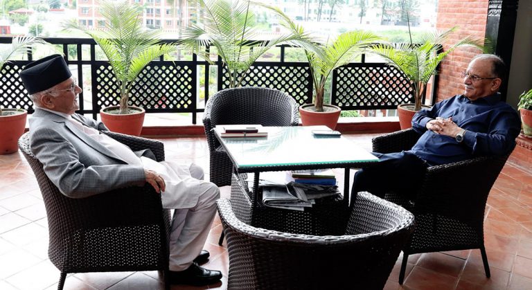 नेकपा एमालेका अध्यक्ष केपी शर्मा ओली र नेकपाका संयोजक पुष्पकमल दाहाल ‘प्रचण्ड’ बीच आज वार्ता भएको हो ।